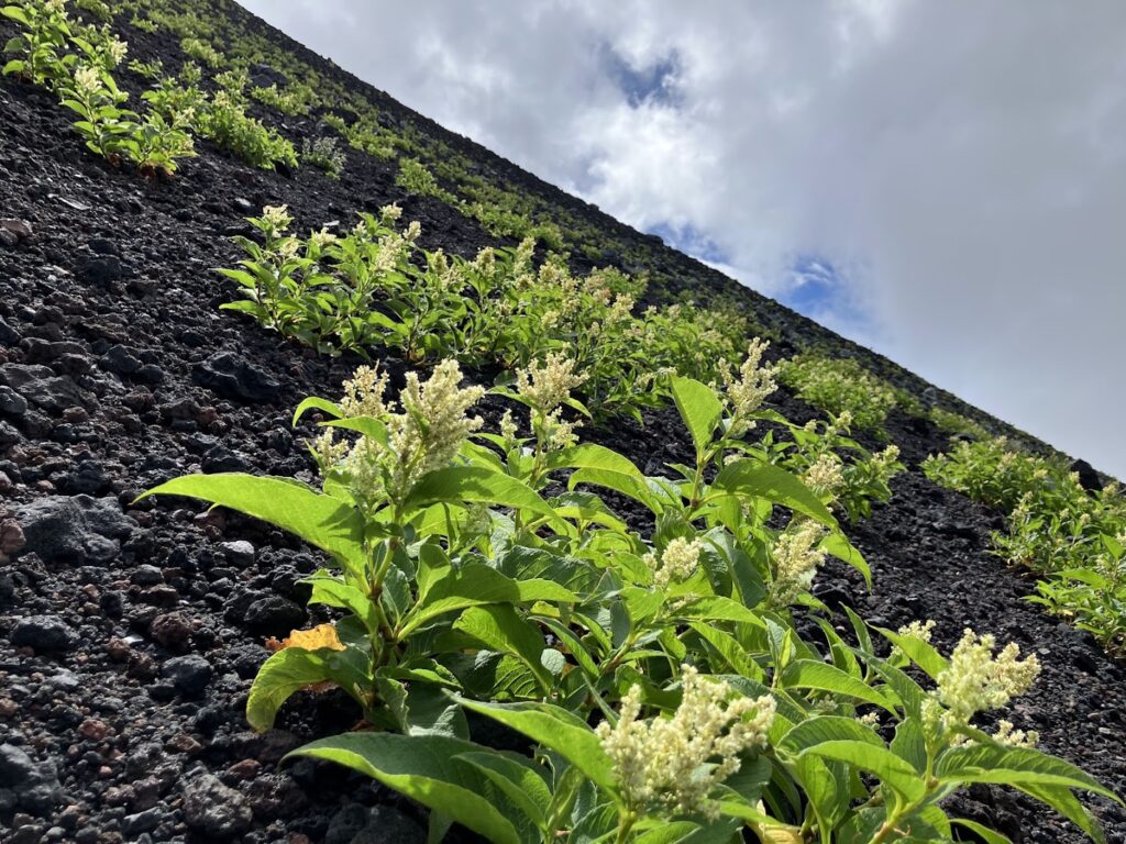 富士山の斜面に一面に咲いているオンダデの大群を見ながら。